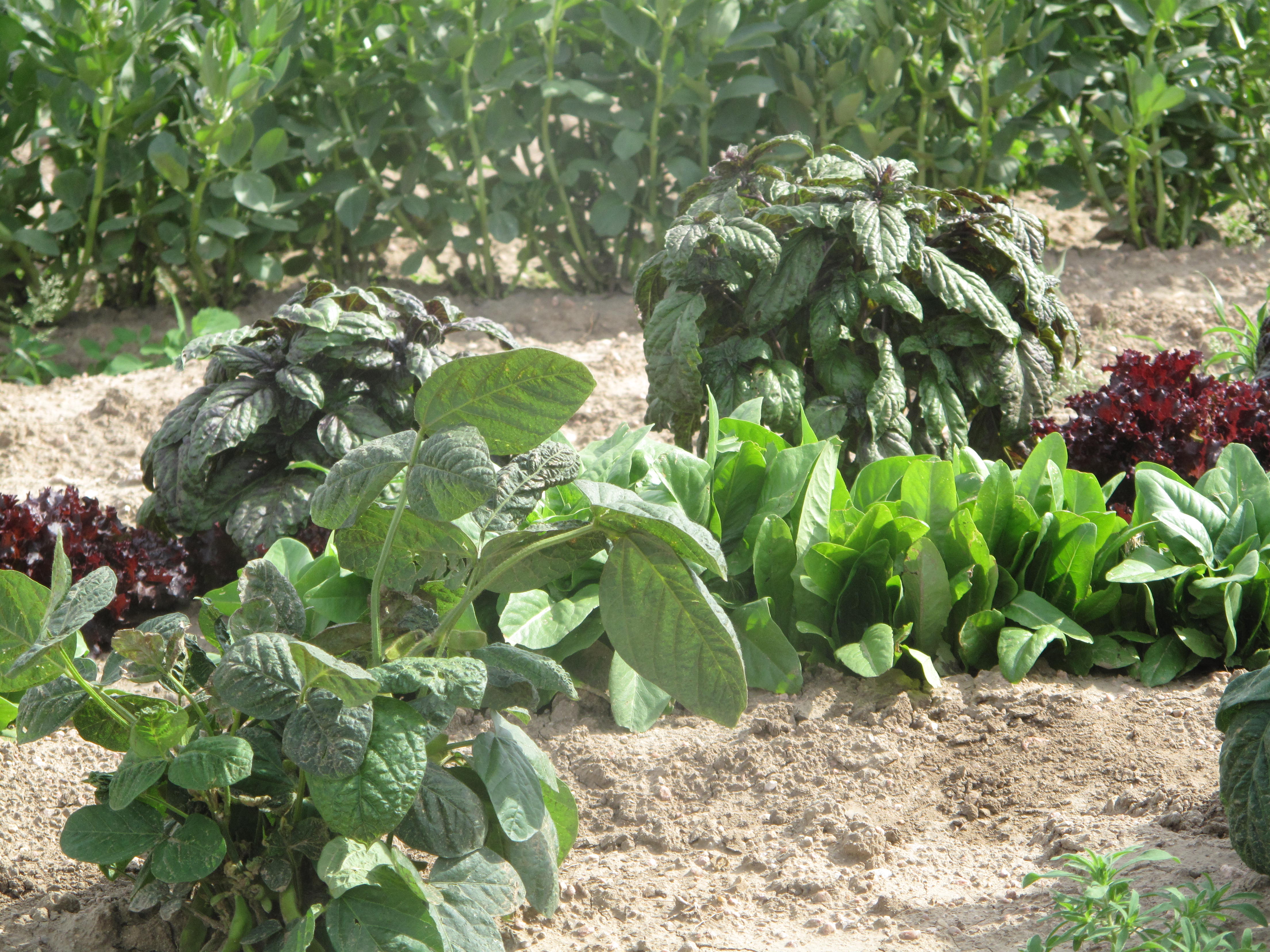 Green beans and lettuce growing together