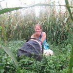 Sarah with Elliot in the corn plot