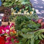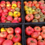 Heirloom tomatoes displayed at farmer’s market