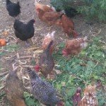Hens enjoying beet green scraps